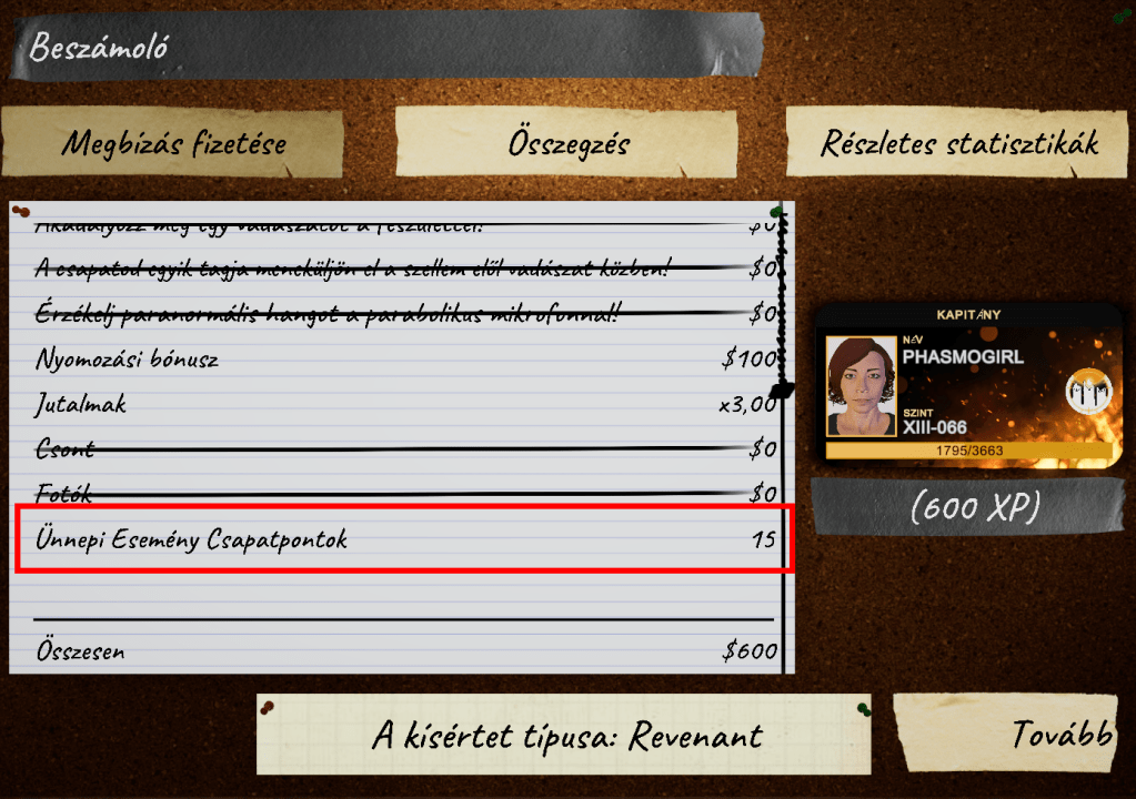 A kapott pontokat a játék végén láthatjuk összesítve: