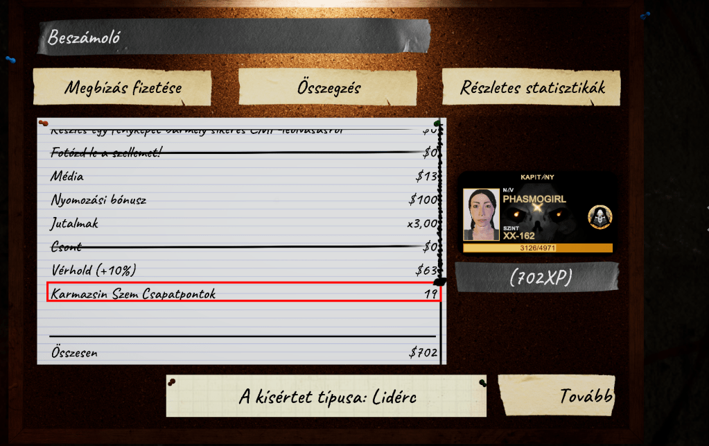 A kapott pontokat a játék végén láthatjuk összesítve: