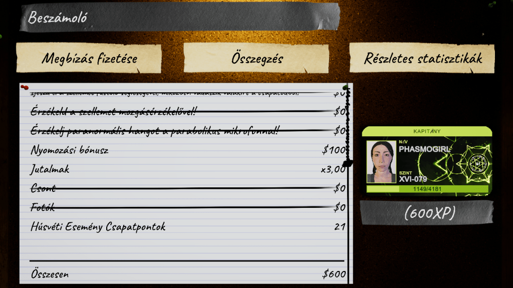 A kapott pontokat a játék végén láthatjuk összesítve: