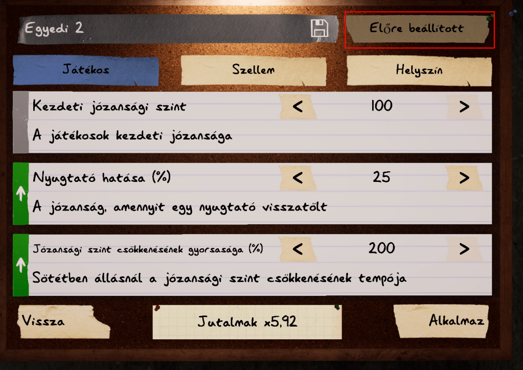 - Egyjátékos mód a Sunny Meadows elmegyógyintézetben (nem a restricted!)